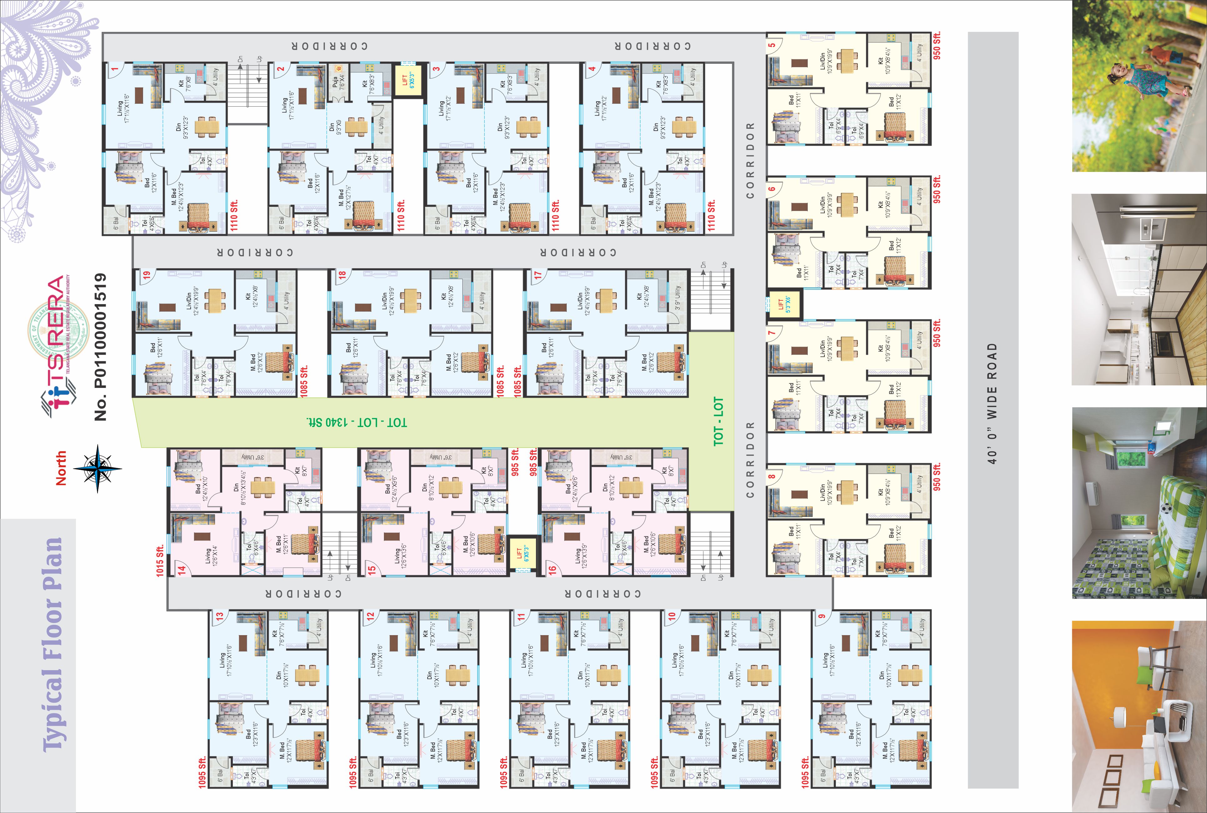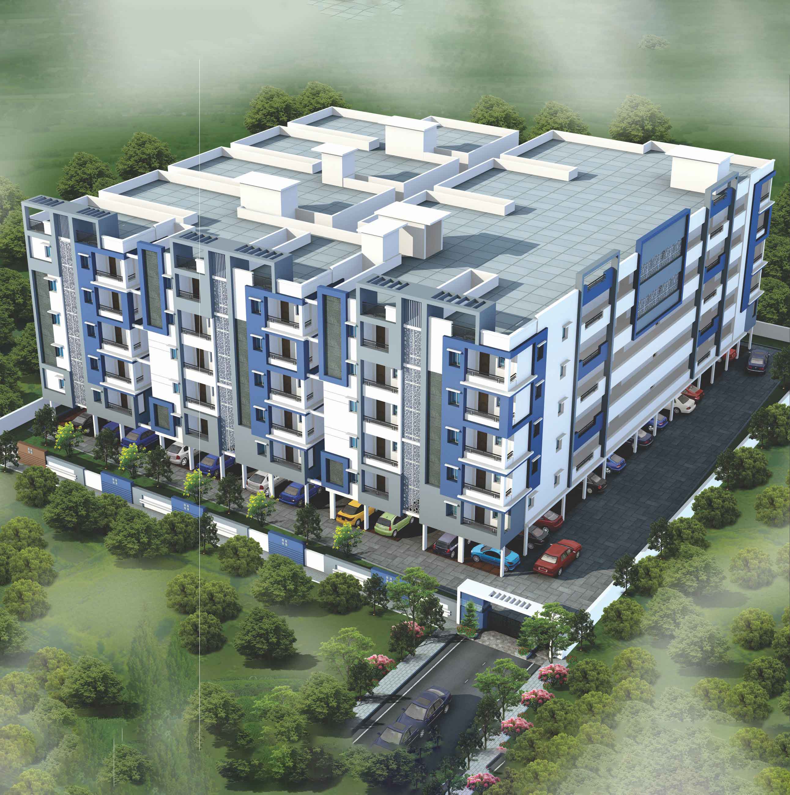 Generator : Back-up power supply for Lift, Water pumps, Common area lighting & for all fan & light points. CC Cameras, Solar Finishing, Provision for Mini Gym room, and 26'X20' size Multipurpose Hall (Equipment Excluded).